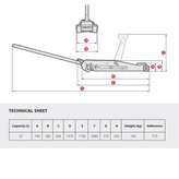 جک سوسماری T15 مگا دارای حداقل ارتفاع 19.5 سانتی متری و حداکثر ارتفاع 60 سانتی متر بوده و طول آن نیز 1.75 متر می باشد.