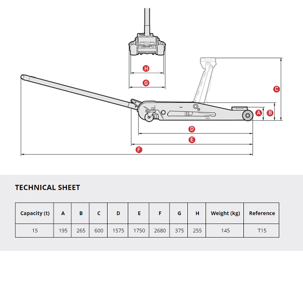 جک سوسماری T15 مگا دارای حداقل ارتفاع 19.5 سانتی متری و حداکثر ارتفاع 60 سانتی متر بوده و طول آن نیز 1.75 متر می باشد.